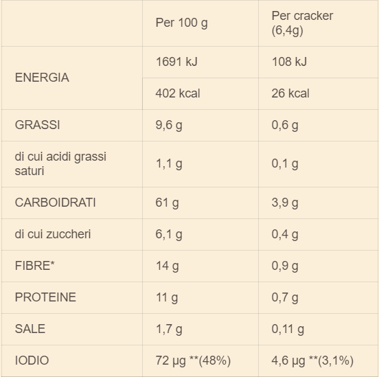 (Glutine, Lattosio, Lieviti ...) per soggetti sensibili.
